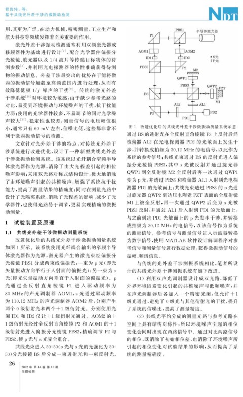 光棱镜 PBS1 分成两束线偏振光: 一束为 p 光( 即光 与传统的光外差干涉测振系统相比, 笔者所设