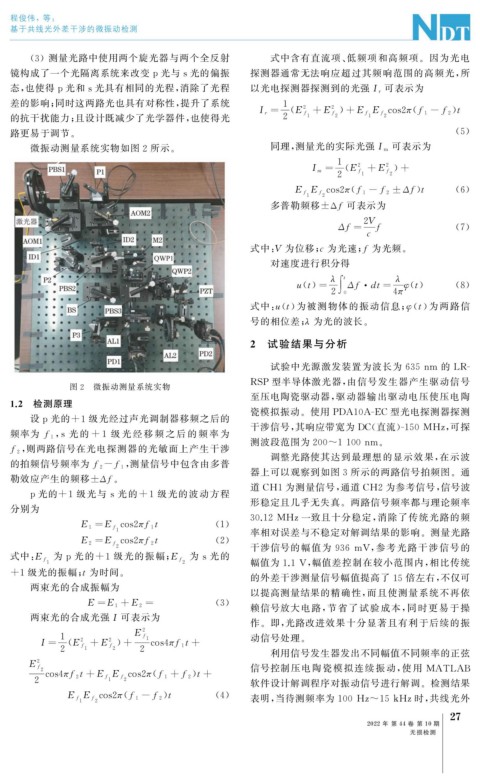 微振动测量系统实物如图 2 所示。 同理, 测量光的实际光强I m 可表示为
