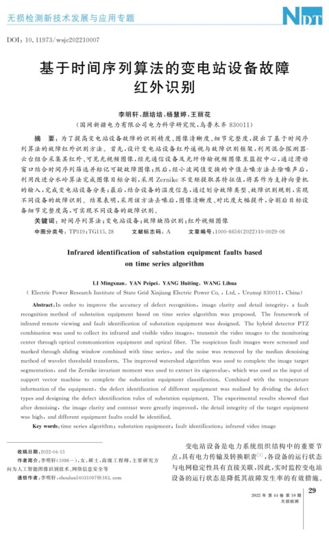 Ke ywords : timeseriesal g orithm ; substatione q ui p ment ; faultidentification ; infraredvideoima g e