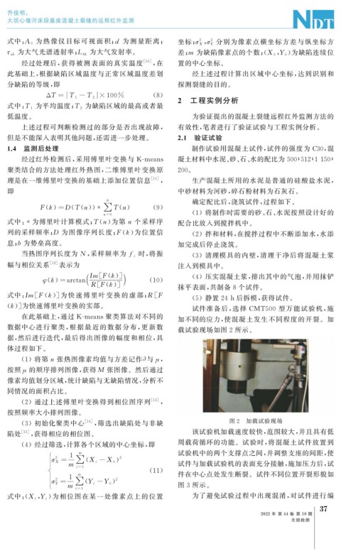 ( 3 )初始化聚类中心 [ 14 ] , 筛选出缺陷处与非缺 图 2 加载试验现场