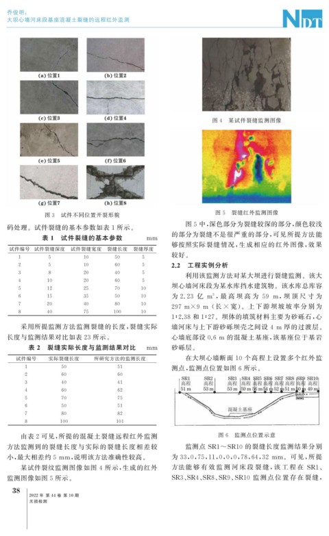 试件编号 实际裂缝长度 所研究方法的监测长度 在大坝心墙断面 10 个高程上设置多个红外监