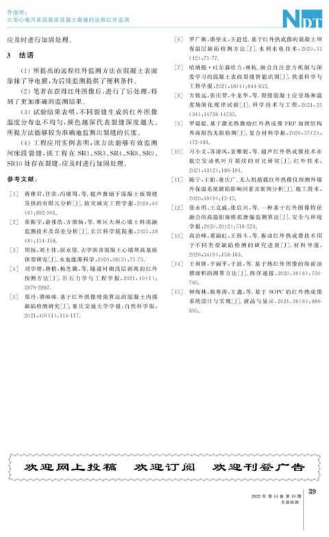 河床段 裂 缝, 该 工 程 在 SR1 、 SR3 、 SR4 、 SR8 、 SR9 、 [ 10 ] 习小文, 苏清风, 袁雅妮, 等 . 超声红外热成像 技 术 在