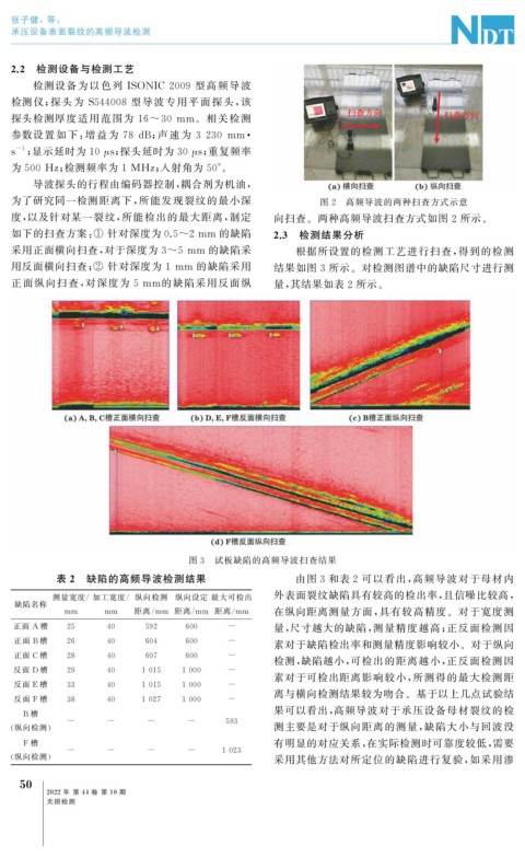 如下的扫查方案: ① 针对深度为0.5~2mm 的缺陷 2.3 检测结果分析