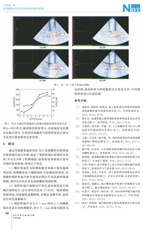 劳损伤裂纹进行识别, 验证了相控阵超声检测的有效 型螺栓研究[ J ] . 世界桥梁, 2021 , 49 ( 4 ): 98-105.