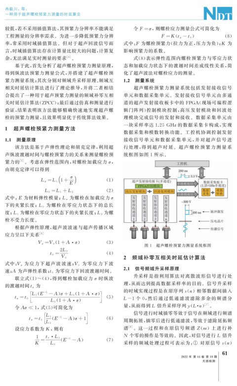 该方法是基于声弹性理论和胡克定律, 利用超 行处理, 得 到 超 声 时 延。超 声 螺 栓 预 紧 力 测 量 系