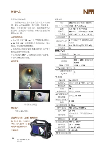 检查一个联箱只需不到半小时;需采用磁性行走 重量 约 5 kg ( 含 1 块电池 )
