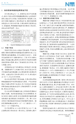 力、 焊缝裂纹、 塔体倾斜和温度等参数的在线监测, 集, 并对上述信号进行本地存储、 远程传输等操作。