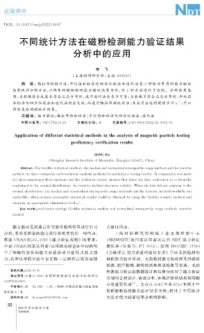 结果统计分析方法, 以两年的磁粉检测能力验证结果为例, 对 3 种方法进行了比较。分析结果表