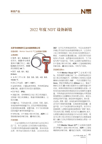 趋广泛,各行业检测人员对其要求也越来越高; 韦林 Mentor Visual iQ™ 工业视频内窥镜
