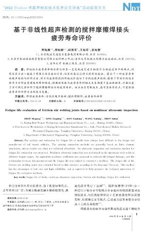 Ke ywords : fati g uelifeofweld ; nonlinearultrasonicins p ection ; frictionstirweldin g ; fati g uelifeevaluation