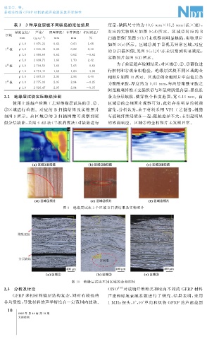③ 区域进行检测。对应的 B 扫描结果及实物照片 富集, 分析认为, 由于材料采用 VPI工艺制备, 树脂