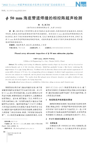 径 50mm 海底管道焊缝的相控阵超声检测。试验结果表明, 该技术可替代传统射线检测, 有效提