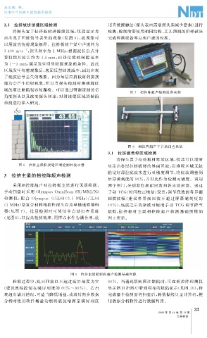 将探头置于拉挤板材拼接缝区域, 仪器显示界 检测, 检测前需使用相同结构、 工艺预制的阶梯试块