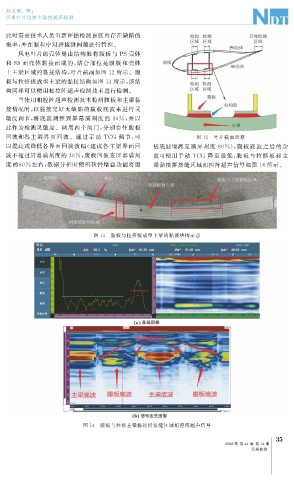 度 的 60% 左右, 数据分析时使用软件增益功能将腹 梁黏接拼接缝区域相控阵超声信号如图 14 所示。