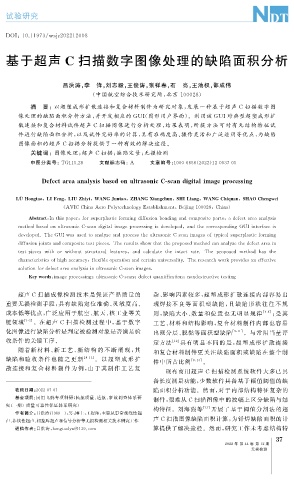 Ke ywords : ima g ep rocessin g ; ultrasonicC-scan ; defect q uantification ; nondestructivetestin g