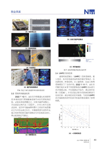 图 6 预应力梁孔道灌浆密实度检测现场 抗压强度试验,并对数据进行拟合,测试相关系