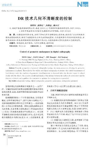 关键词: 射线检测; 数字射线; 几何不清晰度; 透照参数
