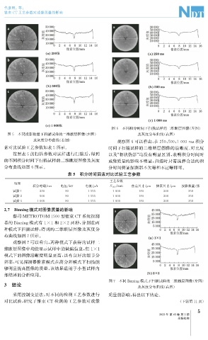 图7 不同 Binnin g 模式下扫描试样的二维断层图像( 左图)