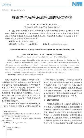 34644 — 2017 《 锆及锆合金管材涡流检测方法》 中 A 深度, 防止出现缺陷漏检。笔者利用涡流检测中的