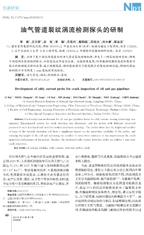 关键词: 油气管道; 涡流; 检测探头; 裂纹