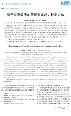 作者简介: 金新玖( 1991- ), 男, 硕士研究生, 主要从事应力检测 态实时监测是油气管道检测领域中的热点问题, 其