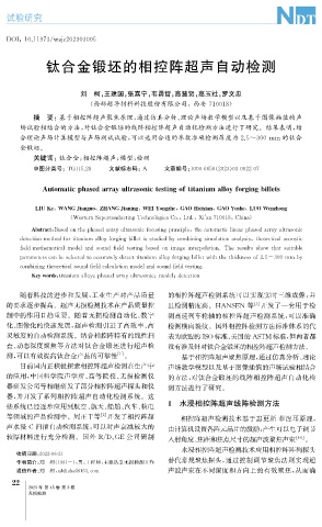 场试验相结合的方法, 对钛合金锻坯的线阵相控阵超声自动化检测方法进行了研究。结果表明, 结