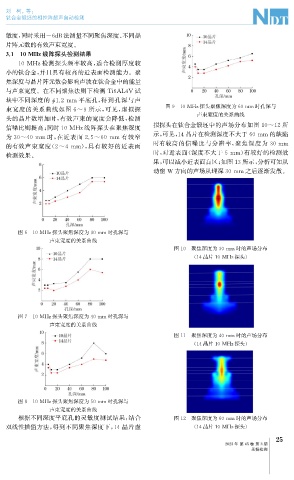束宽度的关系曲线如图 6~9 所示, 可见, 虚拟探 图9 10MHz探头聚焦深度为60mm 时孔深与