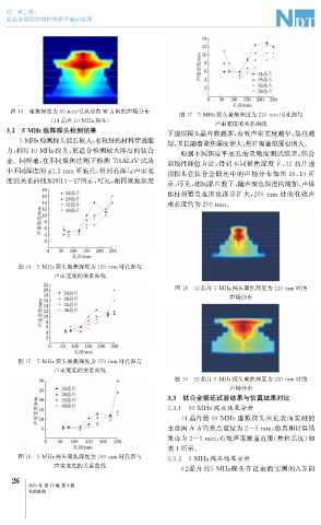 中不同深度的 1.2mm 平底孔, 得到孔深与声束宽 拟探头在钛合金锻坯中的声场分布如图 18 , 19 所