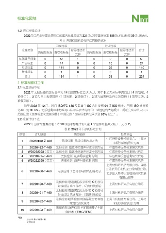 2022年由无损标委负责归口的国内标准总数为224项,其中国家标准185项、行业标准39项,见表1。