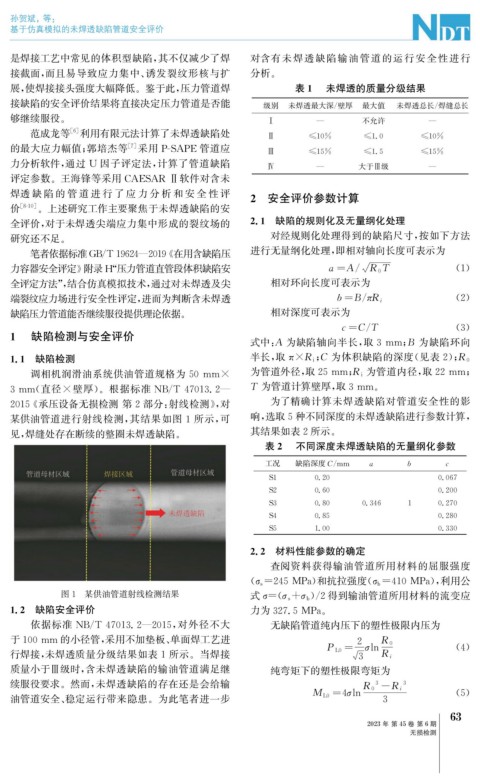 是焊接工艺中常见的体积型缺陷, 其不仅减少了焊 对含有未焊透缺陷输油管道的运行安全性进行