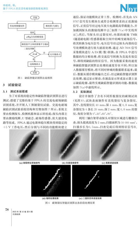 识别系统, 并开展人工预制裂纹试验。交流电磁场 其中, 直线裂纹长40mm , 深4mm , 宽0.8mm ; 复