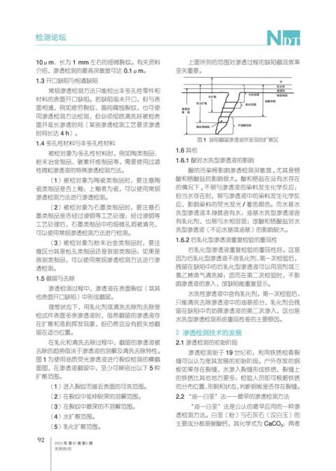 (2)在裂纹中延伸较深的溶解范围。 2.2 “油一白垩”法——最早的渗透检测方法