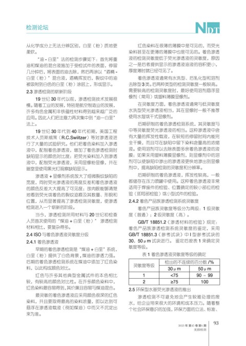2.4.1 着色渗透液 30,50μm 试块进行。 鉴定后按表 1 来确定灵