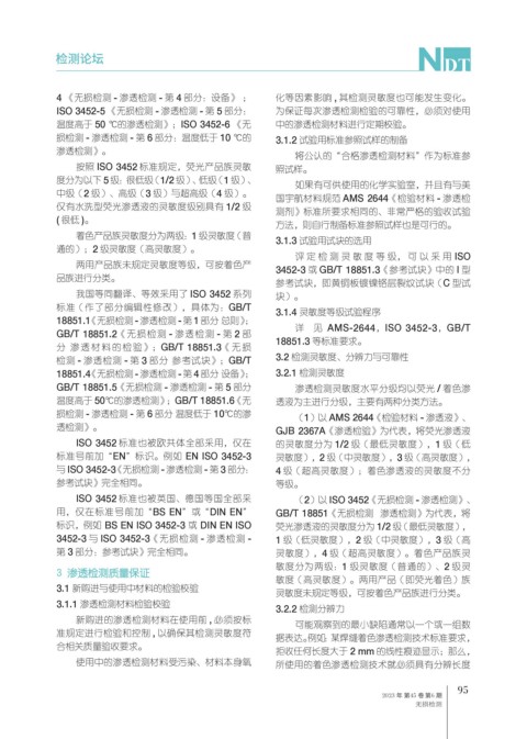 4 《无损检测 - 渗透检测 - 第 4 部分:设备》 ; 化等因素影响 , 其检测灵敏度也可能发生变化。
