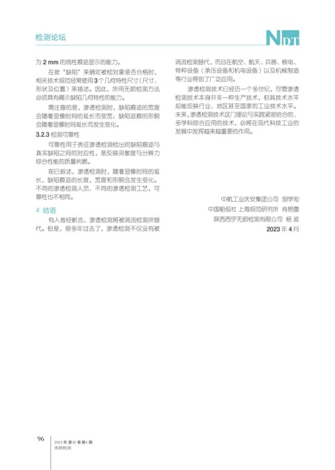 有人曾经断言,渗透检测将被涡流检测所替 陕西西宇无损检测有限公司 杨 波