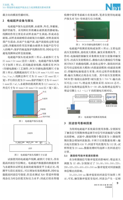 电磁超声探头组成如图1所示, 永磁体尺寸为 作时, 电脑端控制触发采集模块发射方波脉冲触发
