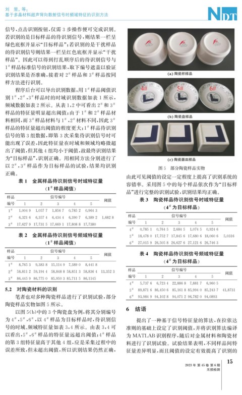 阈值 表4 陶瓷样品待识别信号频域特征量