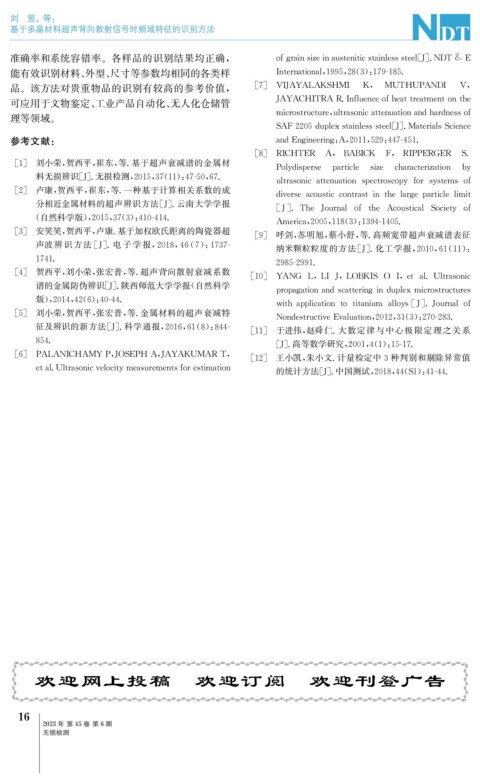 料无损辨识[ J ] . 无损检测, 2015 , 37 ( 11 ): 47-50 , 67.