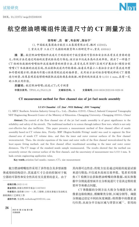 关键词: 航空燃油喷嘴; 流道; CT ; 尺寸测量