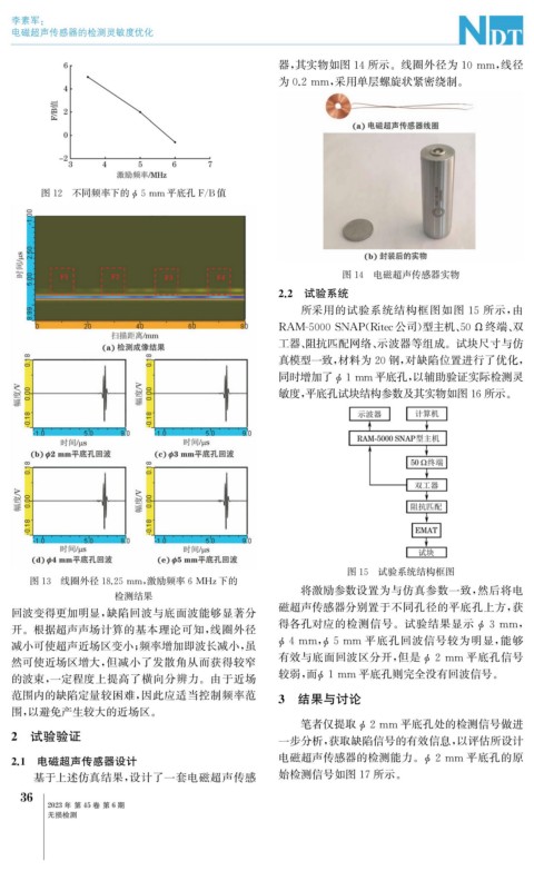 2.1 电磁超声传感器设计 电磁超声传感器的检测能力。 2mm 平底孔的原