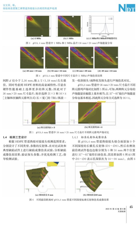 佳。同时考虑到 HDPE 材料的高衰减特性, 尽量在 ϕ 914.4mm 管道中 36mm×20mm 尺寸晶片不同
