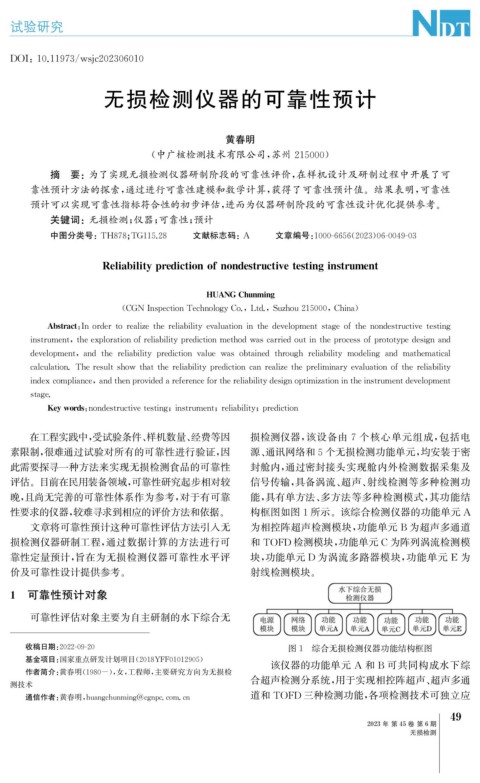 关键词: 无损检测; 仪器; 可靠性; 预计