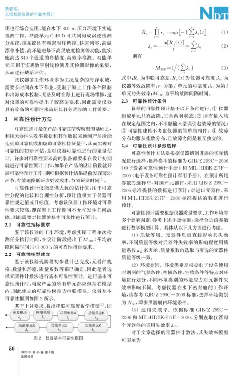 需要长时间在水下作业, 受制于海上工作条件限制 仪器等效故障率; r i 为第 i 单元的可靠度; λ i 为第 i