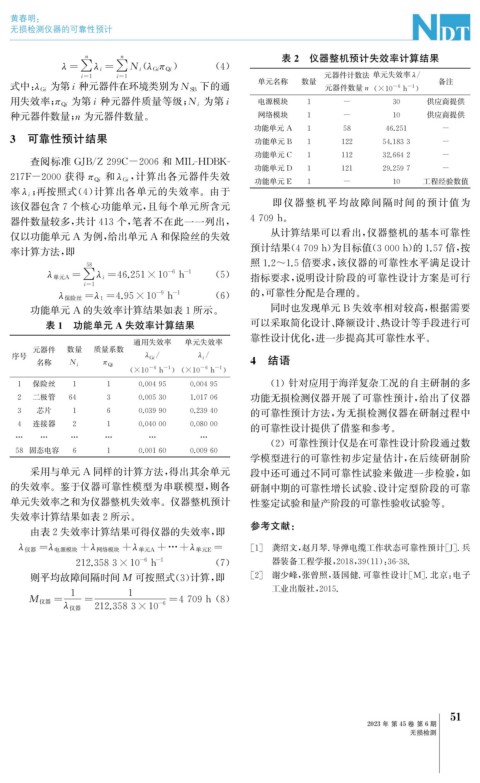 2 二极管 64 3 0.00530 1.01706 功能无损检测仪器开展了可靠性预计, 给出了仪器