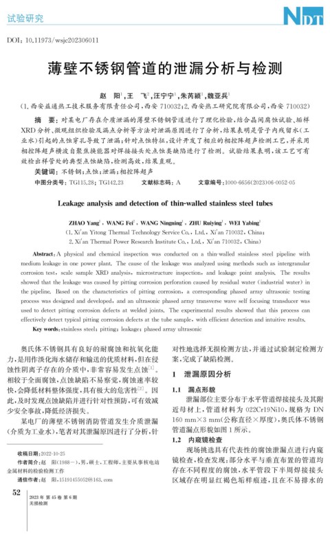 关键词: 不锈钢; 点蚀; 泄漏; 相控阵超声