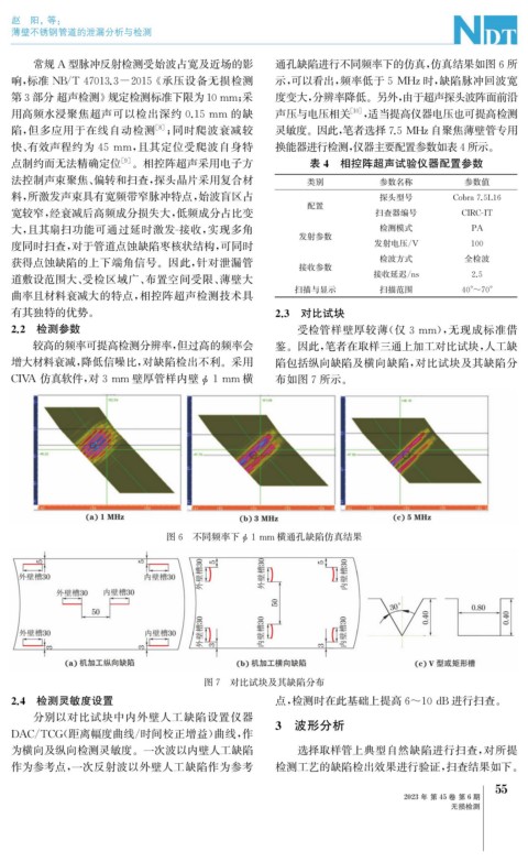 2.2 检测参数 受检管样壁厚较薄( 仅 3mm ), 无现成标准借