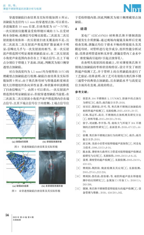 埋藏型点蚀缺陷进行检测, 缺陷扫查结果及实际形 工艺验证, 结果表明, 该工艺可有效检出奥氏体不锈