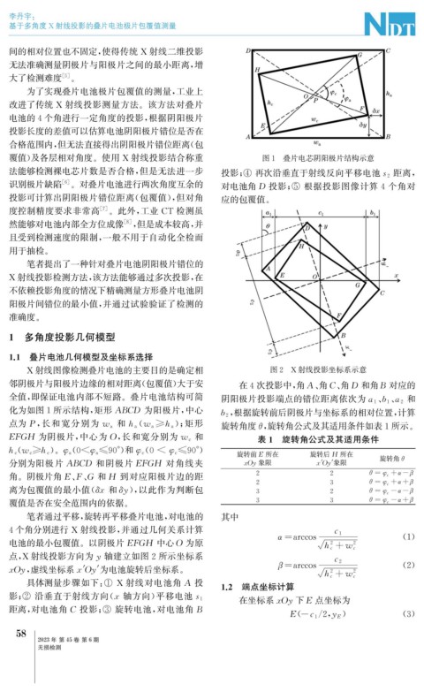 识别极片缺陷 [ 6 ] 。对叠片电池进行两次角度互余的 对电池角 D 投影; ⑤ 根据投影图像计算 4 个角对