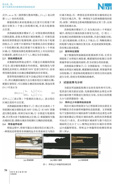 具体缺陷检测步骤如下: ① 将已经分离的4个 线位区域未焊接部分与已焊接部分的比值是文