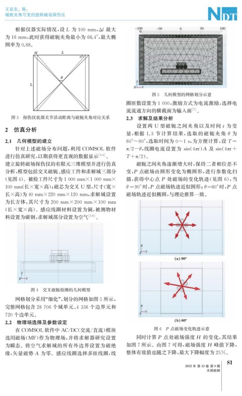 分析, 模型包括交叉磁轭、 感应工件和求解域三部分 变, P 点磁场由圆形变化为椭圆形, 进行参数化扫